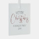 Decorate your christmas tree this year with these elegant glass ornaments, the decorations feature a modern font which reads 'MERRY CHRISTMAS' and is personalized with the family name and year.