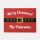 Personalized Merry Christmas welcome door mat. Add your own welcome message, family name, monogram, surname or funny quote. Cute Holiday doormat sign template. Create your own entry mat / rug for front door, entryway, hall, porch, garden etc. Customizable outdoor xmas home decor decorations for your house, shop, company, store or business. Available in small and big large size. Fun Santa Claus belt design.