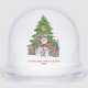 Celebrate the season with this adorable Miniature Schnauzer dog snow globe! A festive green Christmas tree with ornaments, bows, and wrapped presents sets the perfect backdrop for a lifelike dog illustration. Personalize with your family name, your pet’s name, and the year. Perfect for dog lovers, pet parents, and families who want a unique gift that showcases their furry friend.