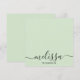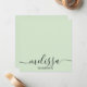 A minimalist sage green calligraphy script name note card design with black and white accents. Customize the name on the note card and make it your own. These note cards are perfect for personalized gifts or personal stationery.