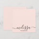 A minimalist pink calligraphy script name note card design with black and white accents. Customize the name on the note card and make it your own. These note cards are perfect for personalized gifts or personal stationery.