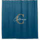 Personalized Simple Navy Blue Monogram Shower Curtain.