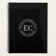 Modern professional mobile notary round logo style for you business branding materials. A branded planner for your business, for tracking client appointments. White type and logo on black.
