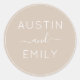 Check out these cute modern stickers for your wedding. They feature a pretty color background, a cute script and customizable names for the bride and groom to add their own name. Customize text as you please to match your wedding vibe.