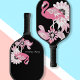 Personalized Modern Black Paisley Pink Flamingo Pickleball Paddle
