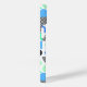 This modern iPhone 14 case features a trendy geometric pattern in black, blue and mint green on white. Personalize it with a name in matching green shade on a black ribbon.