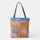 This all-over pattern features an elegant organic line drawing of the flower and buds of a tree in my neighbourhood. The two-sided custom tote bag comes in several different chic colour options, and matching products, for you to mix and match to suit your style! This version is in bright colours of red, blue, green and pink. You can personalize the text.
