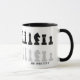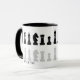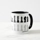 Classic black and white chess mug for chess lovers, featuring chess figures in a geometric pattern. Modern chess pieces design