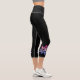 Personalized lotus leggings with a calming vibe. The base of each leg has a blue-pink stylized lotus flower. On the left leg is the editable text "PEACE" in a light co-ordinating pink swirly script. For working out, for yoga, pilates, or meditation and mindfulness. Your choice: yoga leggings, gym leggings, leisure and relaxation leggings.