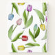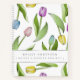 The product design features a pattern of colourful tulip flowers in purple, red, pink, blue, and yellow. This botanical illustration with personalized text makes an elegant modern and unique notebook - Gift idea for birthday, Easter, Mother’s Day, and more!