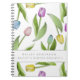 The product design features a pattern of colourful tulip flowers in purple, red, pink, blue, and yellow. This botanical illustration with personalized text makes a modern and unique notebook - Gift idea for birthday, Mother’s Day, and more!