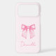 Add a chic and feminine touch to your phone with this Personalized Modern Elegant Pink Bow iPhone 17 Pro Max Case. Designed with a trendy watercolor bow and beautiful hand-drawn script, this stylish case sits over a soft blush pink background for a look that is both modern and elegant.
