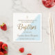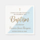 Personalize this modern napkin for your child's Baptism. impressed guests with such a thoughtful personal touch. Blue and white with faux gold cross design.