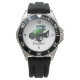 Has heft and feel of expensive stainless steel quartz wrist watches. Solid construction and good looks. Although it had a really top quality rubber strap, I substituted a stainless steel "Shark" style mesh strap, which I think is the most comfortable strap available. Perfect. True colors of original image. Clear, crisp image precisely aligned and spaced.