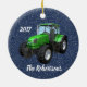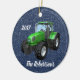 Personalized Modern Green Tractor on Blue Ceramic Ornament