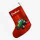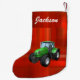 Personalized Modern Green Tractor on Red Small Christmas Stocking