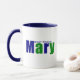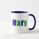 This stylish design features the name "Mary" in deep blue and green coloured lettering, with up to two customizable text fields for adding a last name or special message. This personalized mug is a heartfelt and meaningful gift for any "Mary" in your life—be it a family member, mother, daughter, grandmother, teacher, neighbour, friend, nurse, or anyone you want to honour. For anyone named Mary, this unique mug offers a perfect way to enjoy a strong cup of coffee and start the day with a touch of elegance and personalization.