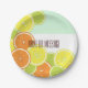 This design features a pattern of summer citrus fruit slices: orange, lemon, and lime. The original food illustration with personalized text makes modern and unique paper plates.