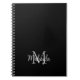 This modern black notebook features a monogram and name in stylish script typography. It is easily customizable.