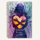 Embrace creativity and inspiration with this modern and stylish notebook, perfect for journalling, note-taking, or gift-giving. The front cover showcases an artistic, dreamy silhouette holding a radiant heart, surrounded by intricate floral patterns and star-like accents. A romantic Shakespearean quote from Antony and Cleopatra, “Where hast thou been, my heart?”, graces the cover in an elegant script font, enhancing the notebook’s ethereal theme.