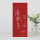Modern Save the Date Wedding Announcements with white text on a red background. A bold design which combines modern elements with elegant script text. Design by Elke Clarke Designs ©2011. More invitation designs at www.luxuryweddinginvites.com. An elegant mixture of fancy script with modern font for your wedding engagement announcement text. Add your personal wedding information using the prompts or select "customize it" to change background colours and further personalize your save the date cards.