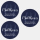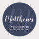 feature family name in white modern script font style and monogram in light navy blue modern script font style as background