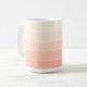 This trendy striped coffee mug features a pattern of horizontal stripes in pastel orange, light peach, coral, and white. It has space for customization or personalization with a name, monogram, or initials of your choice. With its unique, simple, funky, modern, and whimsical hipster design, this mug is perfect for the elegant artistic fashionista, artsy fashion diva, hip trendsetter, vintage retro art style enthusiast, or lover of geometric motifs.
