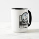 The design features a pair of ice skates over a snowflake crest and an off-white tartan pattern background. This elegant winter sports design serves as a cute and unique 15 oz mug with personalized text. Gift Idea for figure skater, ice dancer, speed skater, ice skating fan, and more!