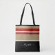 Personalized Modern Trendy Black Red Tan Stripes Tote Bag