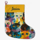 Personalized Modern Whimsical Cat Design Large Christmas Stocking