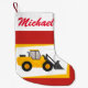 Personalized Modern Yellow Loader Tractor on Red Small Christmas Stocking