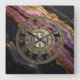 Personalized Monogram Agate Pink Rustic Metal Luxe Square Wall Clock