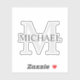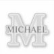 features personalized name in grey and monogram in light grey as background, in classic serif font style.