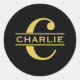 Personalized Monogram And Name Black And Gold Classic Round Sticker