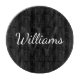 features personalized name in white script font style and monogram in grey serif font style as background, on black background.