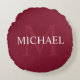 Personalized Monogram and Name Burgundy Red Round Pillow