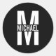 featuring personalized monogram in white bold modern sans serif font style with box of name in the middle of monogram on black background.