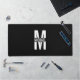 featuring personalized monogram in white bold modern sans serif font style with box of name in the middle of monogram.