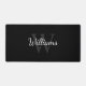 features personalized name in white script font style and monogram in grey serif font style as background, on black background.
