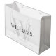 features personalized name in grey and monogram in light grey as background, in classic serif font style,