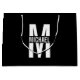 featuring personalized monogram in white bold modern sans serif font style with box of name in the middle of monogram on black background.