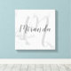 featuring name in grey modern script font style and monogram in light grey modern script font style as background on white marble background.