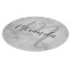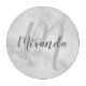 featuring name in grey modern script font style and monogram in light grey modern script font style as background on white marble background.