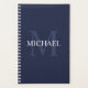 features personalized name in white and monogram in light navy blue as background, in classic serif font style,