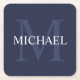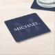 Personalized Monogram and Name Navy Blue Square Paper Coaster