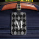 Personalized monogram argyle pattern travel luggage tag. Chic Initialled design with vintage retro diamond pattern. Fashion print with big name letter. Stylish gift for travelling men and women. Chic Black and white colour or customize. Luxurious typography design. Luxury style baggage label for luxe golf bags and suitcases.