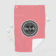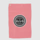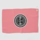 Coral background with grey and white circle centred on towel with last name initial in black and first name in white
