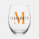 Personalized Monogram Custom Initial Name Elegant Stemless Wine Glass