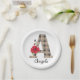 Personalized monogram editable A text red flower f Paper Plate