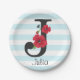 Personalized monogram editable J text red flower f Paper Plate